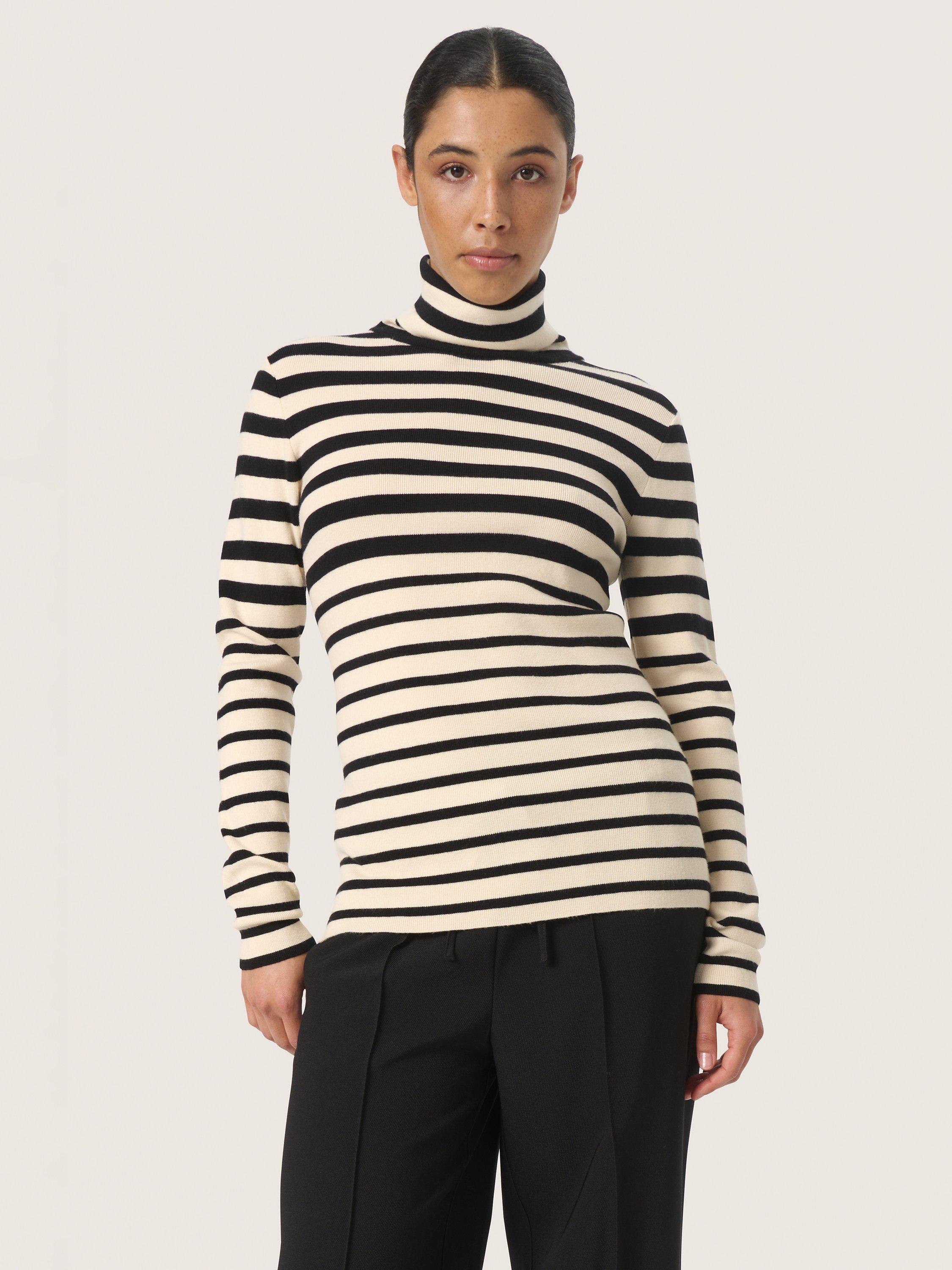 Product Name: Black and white striped roll neck sales
