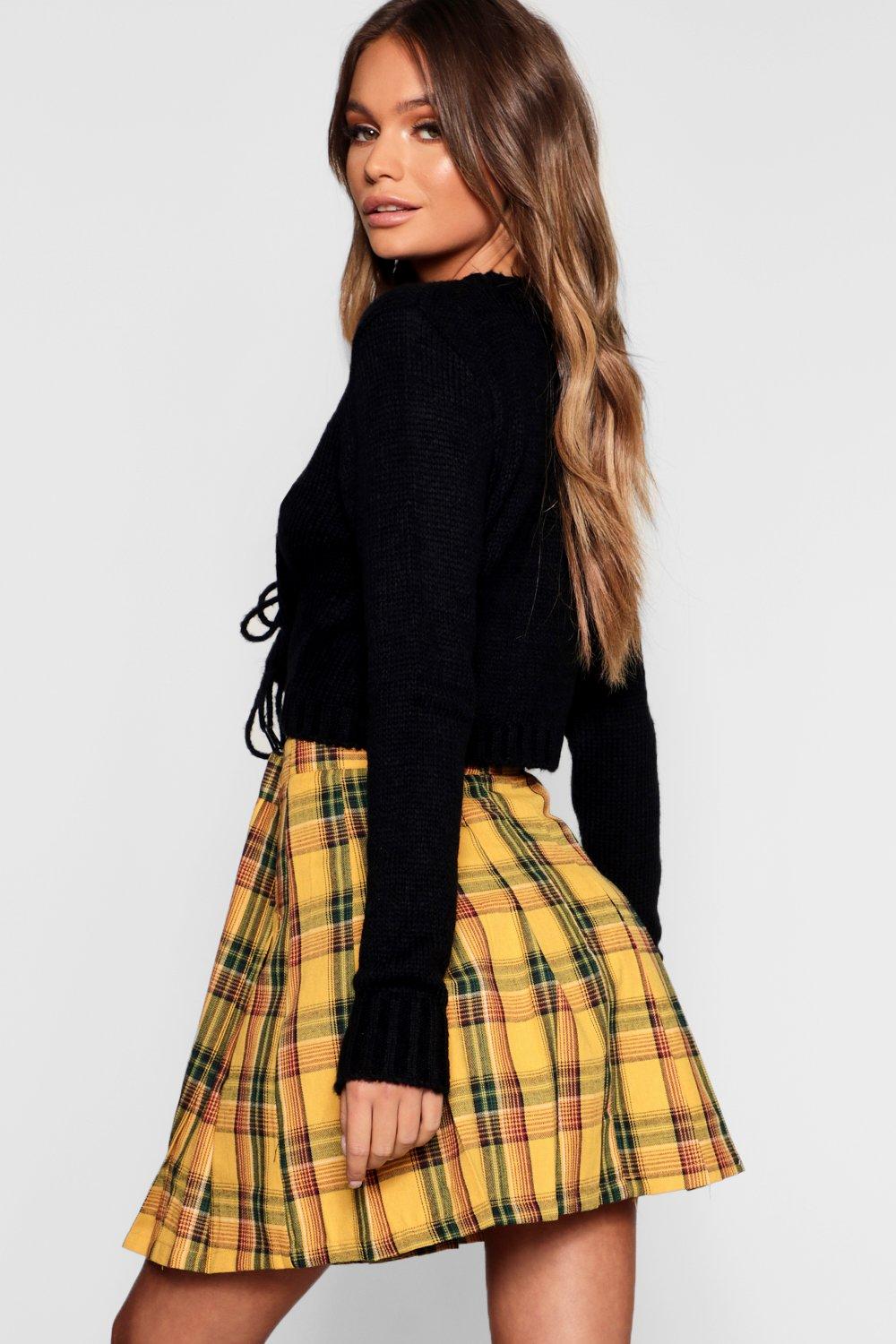 Product Name: Boohoo pleated mini skirt in yellow check sales