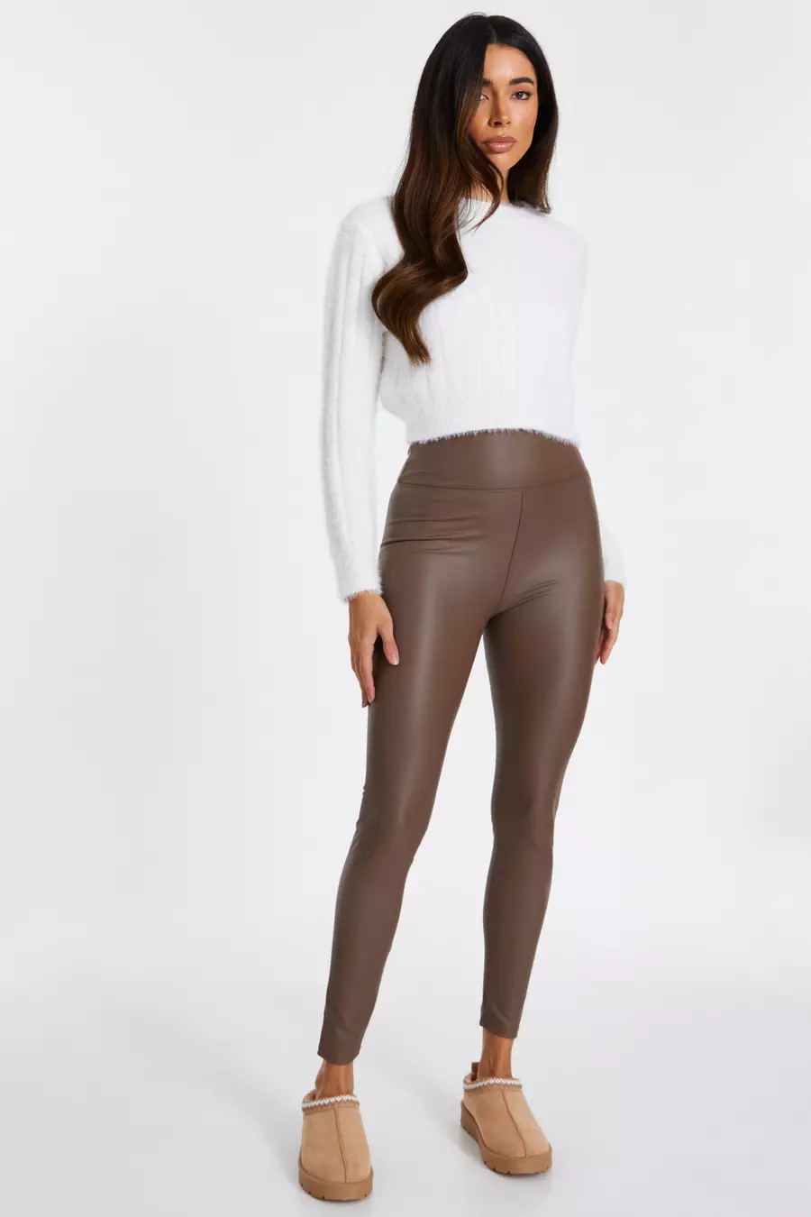 Product Name: Brown faux leather leggings sales
