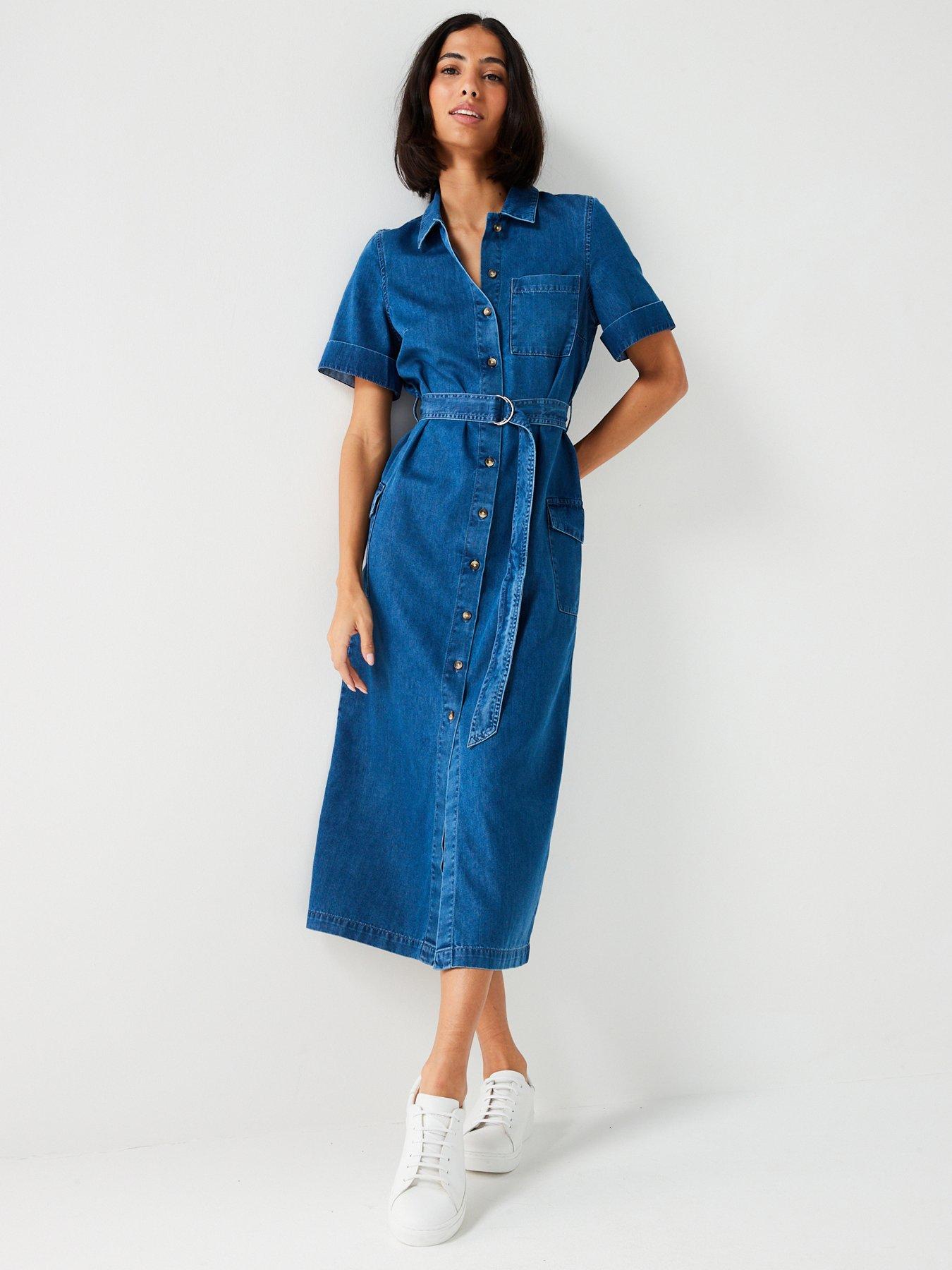 Product Name: Denim shirt dress midi length sales