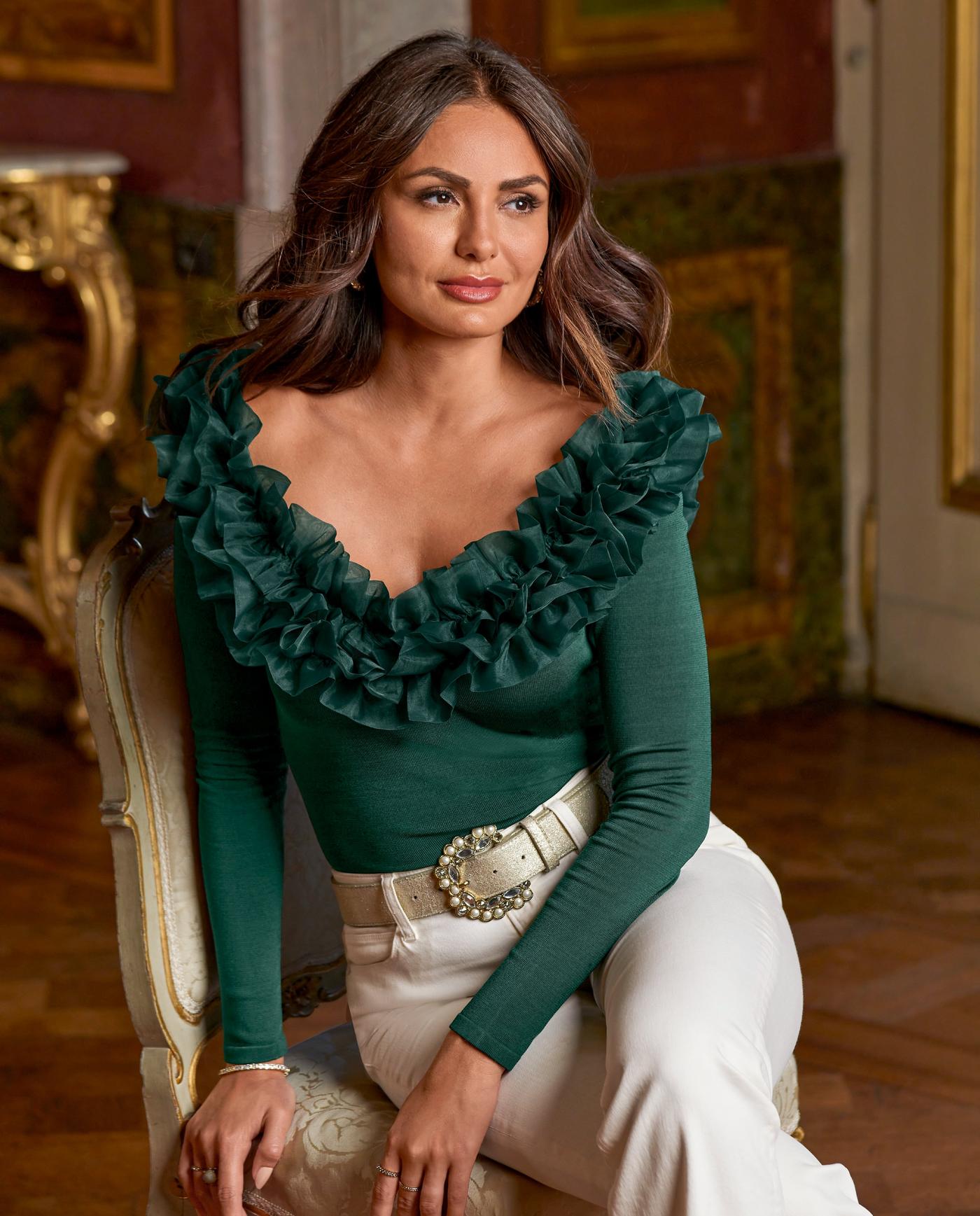 Product Name: Green ruffle sweater sales