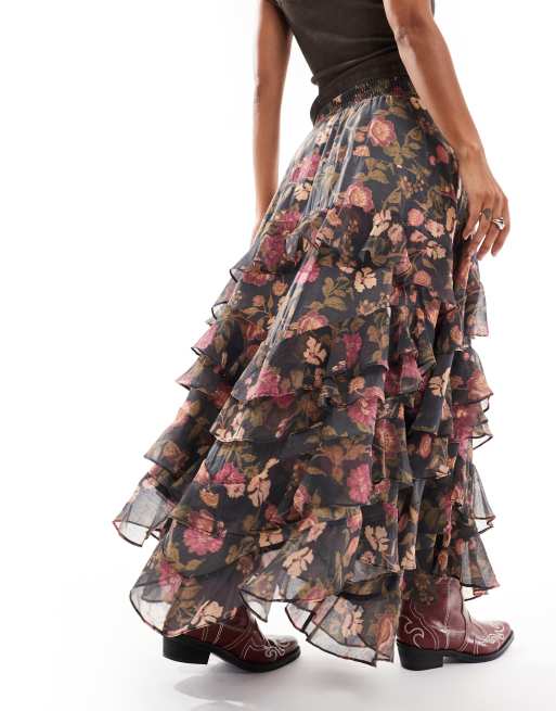 Product Name: High waisted floral print tiered hi-lo maxi skirt sales