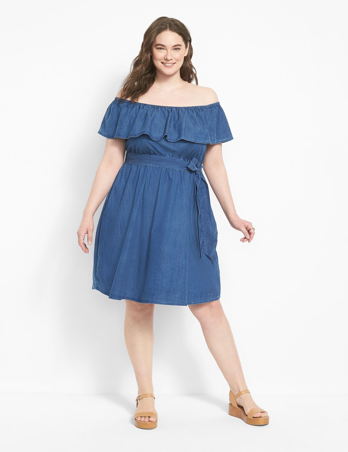Product Name: Off the shoulder chambray dress sales