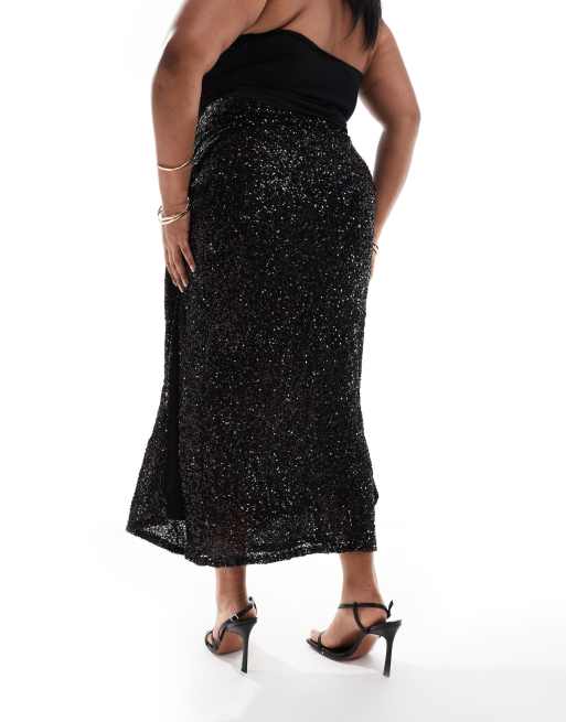 Product Name: Plus size black sequin maxi skirt sales