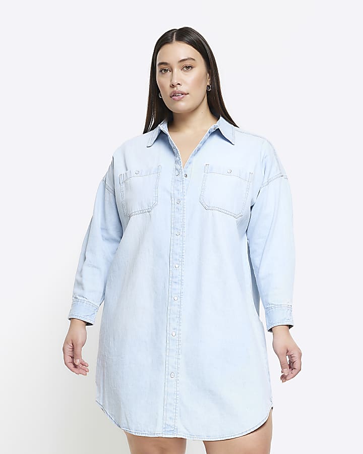 Product Name: Plus size blue jean shirt dress sales