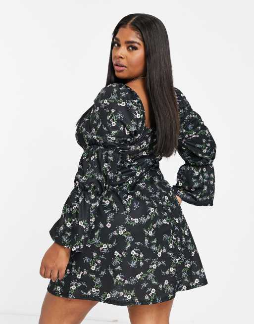 Product Name: Asos black floral tea dress sales