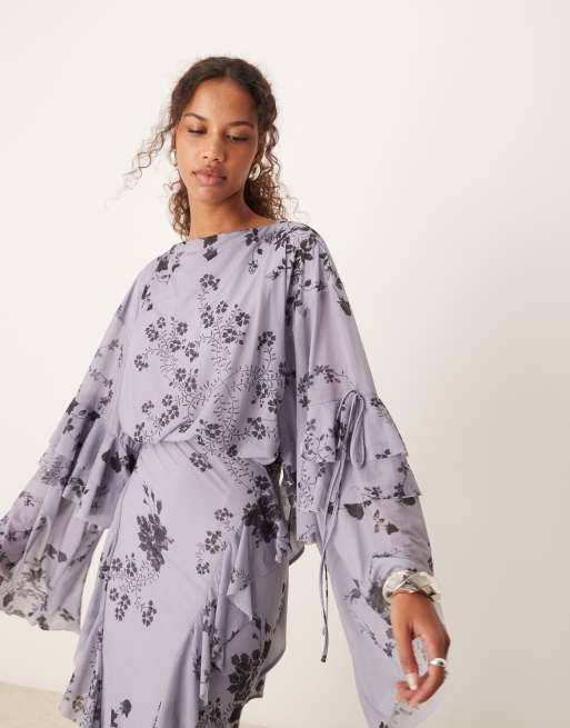 Product Name: Asos design dipped hem maxi dress with 3d embellishment and ruffle sleeve sales